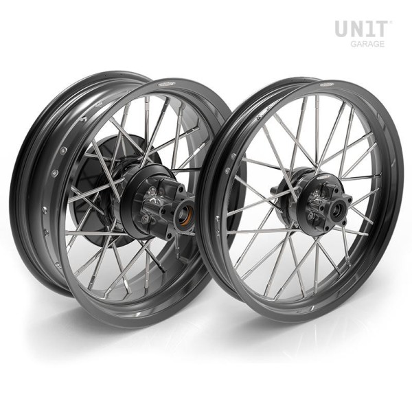 Diseñado y hecho a mano en Italia: un concentrado de técnica y destreza manual que hará que tu bicicleta sea única y exclusiva. Par de ruedas delanteras/traseras totalmente intercambiables con las ruedas originales y compatibles con la moto de serie sin tener que cambiar ningún componente original. Se reutilizan sus discos de freno actuales, tornillos y llantas originales.