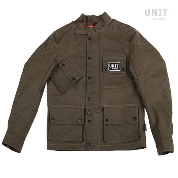 Algodón encerado escocés original de 16 oz. Bolsillos frontales inferiores con cremallera y aberturas laterales. Predisposición para protecciones D3O que se pueden adquirir por separado. Hecho a mano en Italia, listo para grandes aventuras ... ¡pero también para un aperitivo!