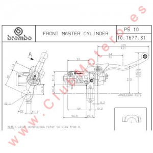 Bomba de freno PS 10 plata con depósito plata leva ajustable. protector de goma Brembo 10767731