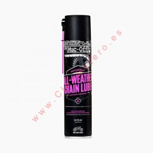 Muc-Off ‘All-Weather Chain Lube’, a state of the art motorcycle chain lubricant means longer intervals between applications, with greater protection for your chain! Suitable for all weather on/off-road riding, its high performance synthetic formulation offers maximum protection the ceramic additives increase component life and maximise horsepower.