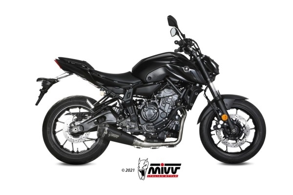 NOTICIA: HOMOLOGADO SOLO CON CATALIZADOR ACC046A1 INSTALADO Hecho para mejorar estética sonido y rendimiento de la moto el escape slip-on Mivv nace a partir de la máxima atención al diseño con el objetivo de satisfacer a los que quieren distinguirse también por el look de su propia moto El escape DELTA RACE se caracteriza por una forma exclusiva que a través de una transformación gradual se hace de forma cónica a hexagonal Hay muchos detalles que hacen el estilo único como la tapa en carbono twill 3K la abrazadera perimetral con doble remachado el casquillo de entrada fabricado solidamente para ofrecer la maxima precisión de enganche En el terminal está el caracteristico logo Mivv realizado por la tecnología láser Se caracteriza por un cuerpo central de acero inox negro con efecto Black Moon que se obtiene gracias a un proceso especial de pintura con base ceramica Esto da al producto un look más agresivo