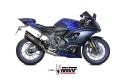 NOTICIA: PROTECTOR DE CALOR DE CARBONO INCLUIDO HOMOLOGADO EURO 5 SOLO CON CATALIZADOR ACC077A1 INSTALADO Hecho para mejorar estética sonido y rendimiento de la moto el escape slip-on Mivv nace a partir de la máxima atención al diseño con el objetivo de satisfacer a los que quieren distinguirse también por el look de su propia moto Los escapes de la línea SR-1 están dedicados principalmente a las superbike e hypernaked motocicletas El escape SR-1 hereda toda la experiencia ganada en los varios campeonatos mundiales MotoGp - Moto2 - Moto3 El escape ha sido tratado con mucha atención a los detalles y garantiza un mejoramiento del look y de las prestaciones de la moto Esta versión consta de un cuerpo hexagonal de titanio con tratamiento negro y de una tapa de carbono con tratamiento T-will esto es resistente a las fuertes variaciones de temperatura que son tipicas del mundo racing A diferencia del escape de serie el SR-1 de titanio garantiza una grande reducción del peso